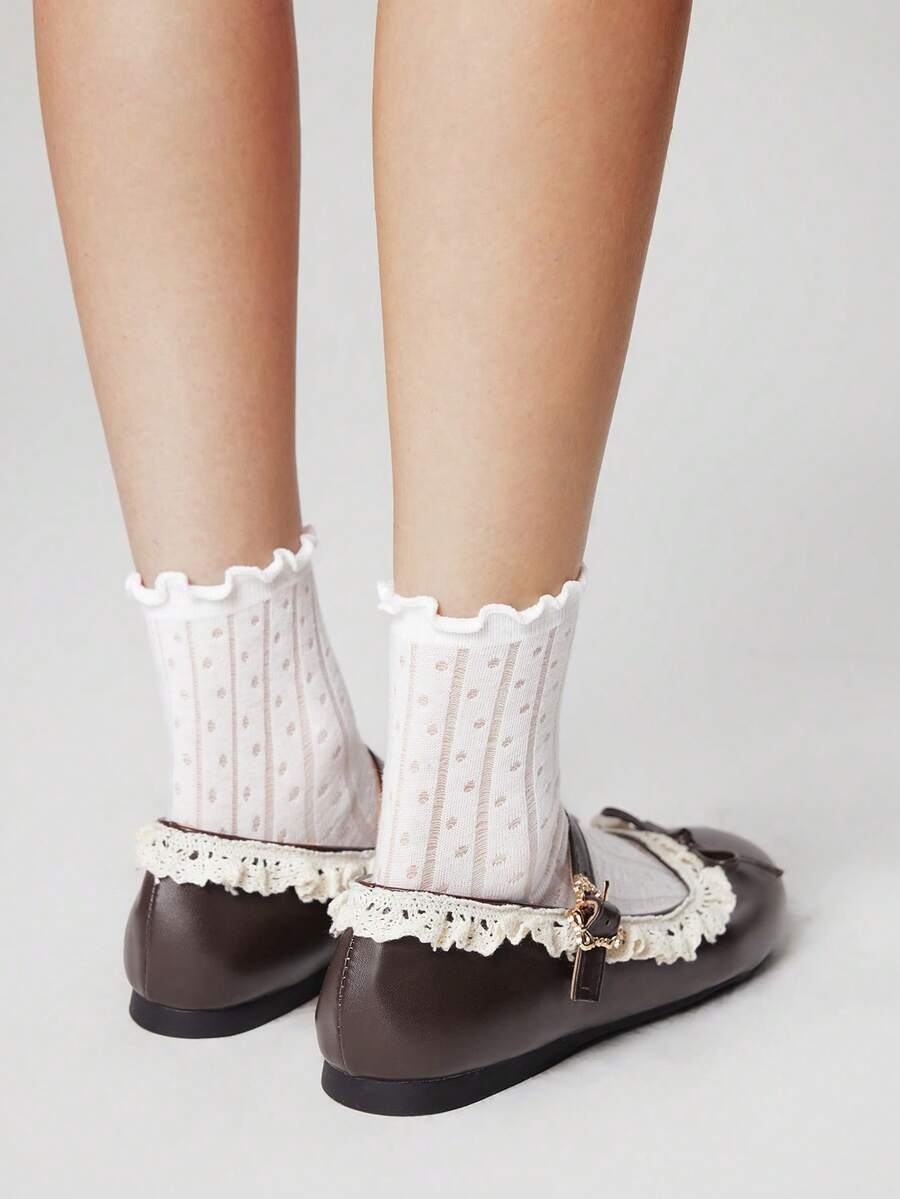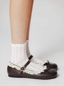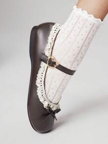 Kawaii Women's Brown Loafers, Closed Toe Mary Jane Shoes, Bow Lace Lolita Ballet Flats