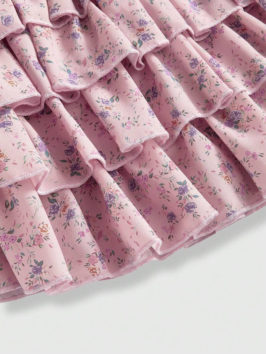 Kawaii Women's Casual Ditsy Floral Ruffled Hem Skirt