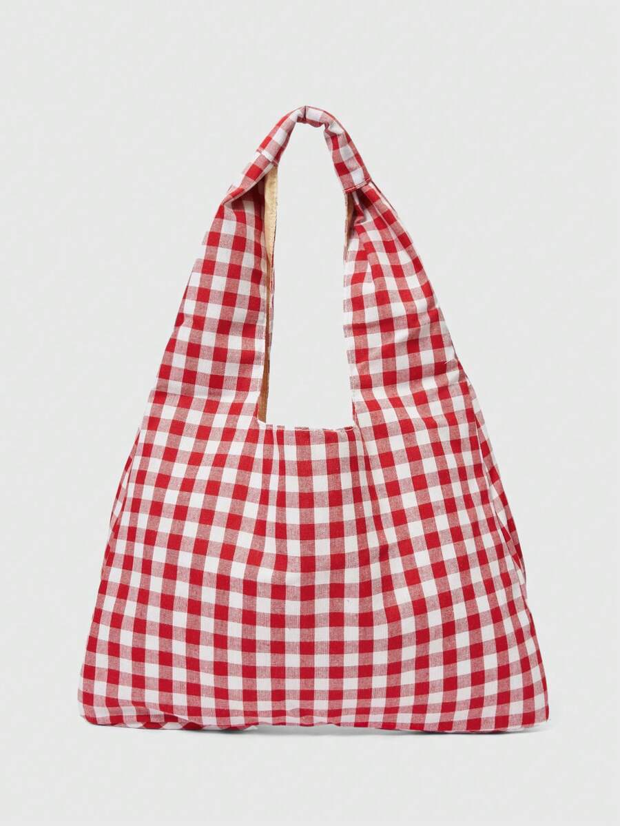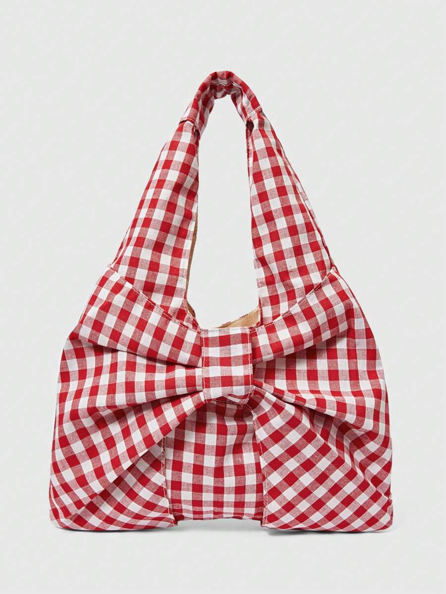 Kawaii Women's Checkered Bow Decoration Shoulder Underarm Bag, Sweet And Cool Outdoor Vacation Travel Bag, Multifunctional Daily Commuting Shopping Shoulder Bag, Casual Cell Phone Coin Storage Bag, Cute Bow Bag For Women
