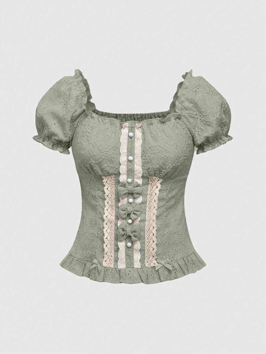 Kawaii Women's Cute Bow Decor Waist Cinched T-Shirt