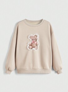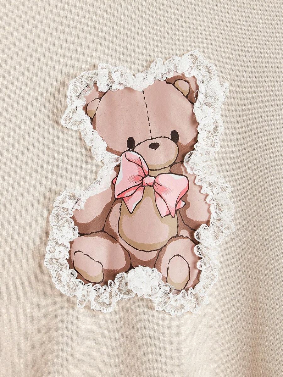 Kawaii Women's Cute Casual Teddy Sweatshirt With Lace & Floral Detailing