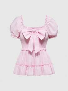 Kawaii Women's Cute Doll Style Puff Sleeve Blouse With Oversized Bow