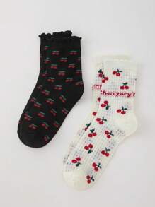 Kawaii Women's Fashion Cute Cherry Jacquard Mid-Calf Socks