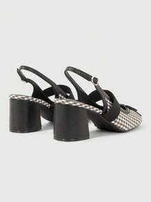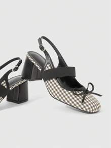 Kawaii Women's French Mary Jane Backless Fashionable Elegant Commuter Contrast Plaid Fabric High-Heel Pumps