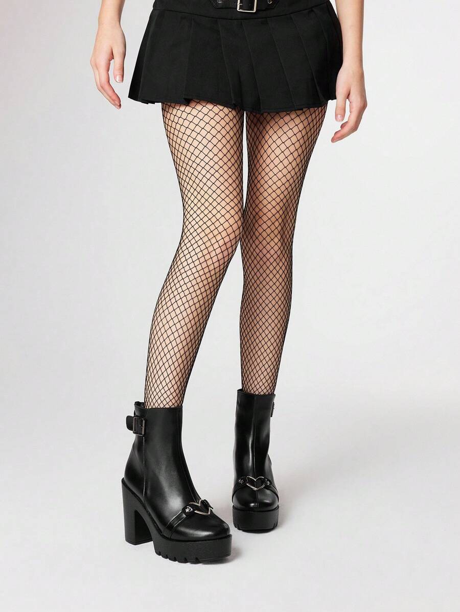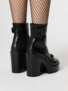 Kawaii Women's Gothic Style Round Toe Buckle Decor Platform Chunky Heel Punk Boots, PU Leather Black High Heel Boots Suitable For Party, Daily Wear, Evening Dress, Height Increasing And Leg Lengthening, Halloween