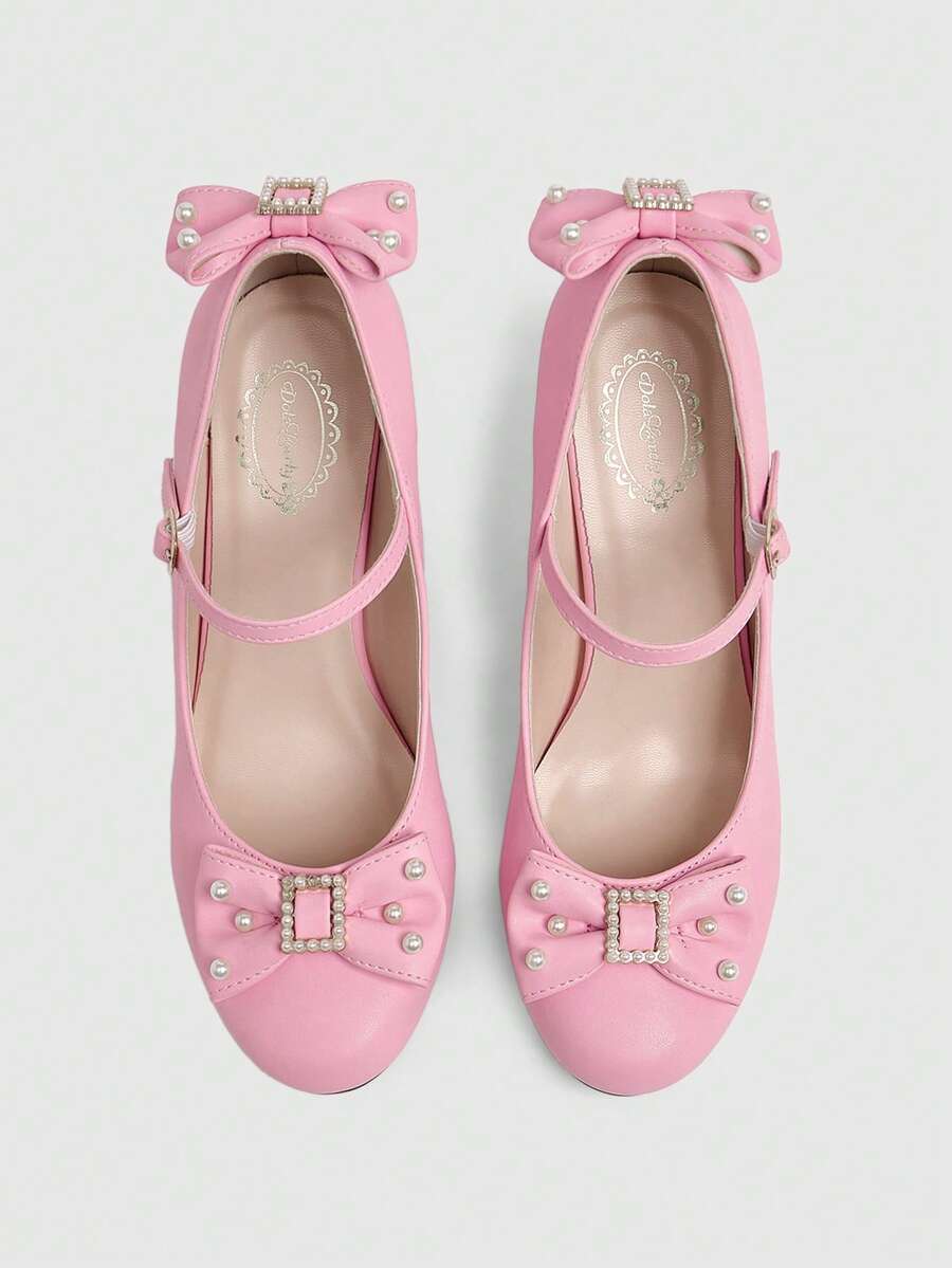 Kawaii Women's Pink Round Toe High Heel Mary Jane Shoes, Classic Lolita Style Floral Patchwork Design