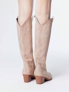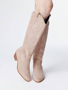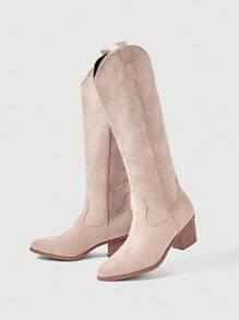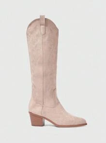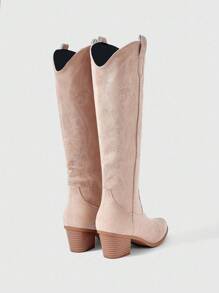Kawaii Women's Plus Size Fashion Embroidered Western Cowboy Boots, Suede Lining, Slip-On Knee-High Boots, Autumn/Winter 2025 New Outdoor, Pink