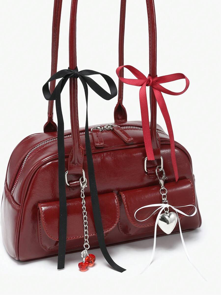Kawaii Women's Retro Cute Style Plaid Bowknot Tie Cherry & Heart Shaped Decoration Shoulder Bag Crossbody Bag, Boston Bag With Multiple Pockets, School, Fashionable Burgundy Bag
