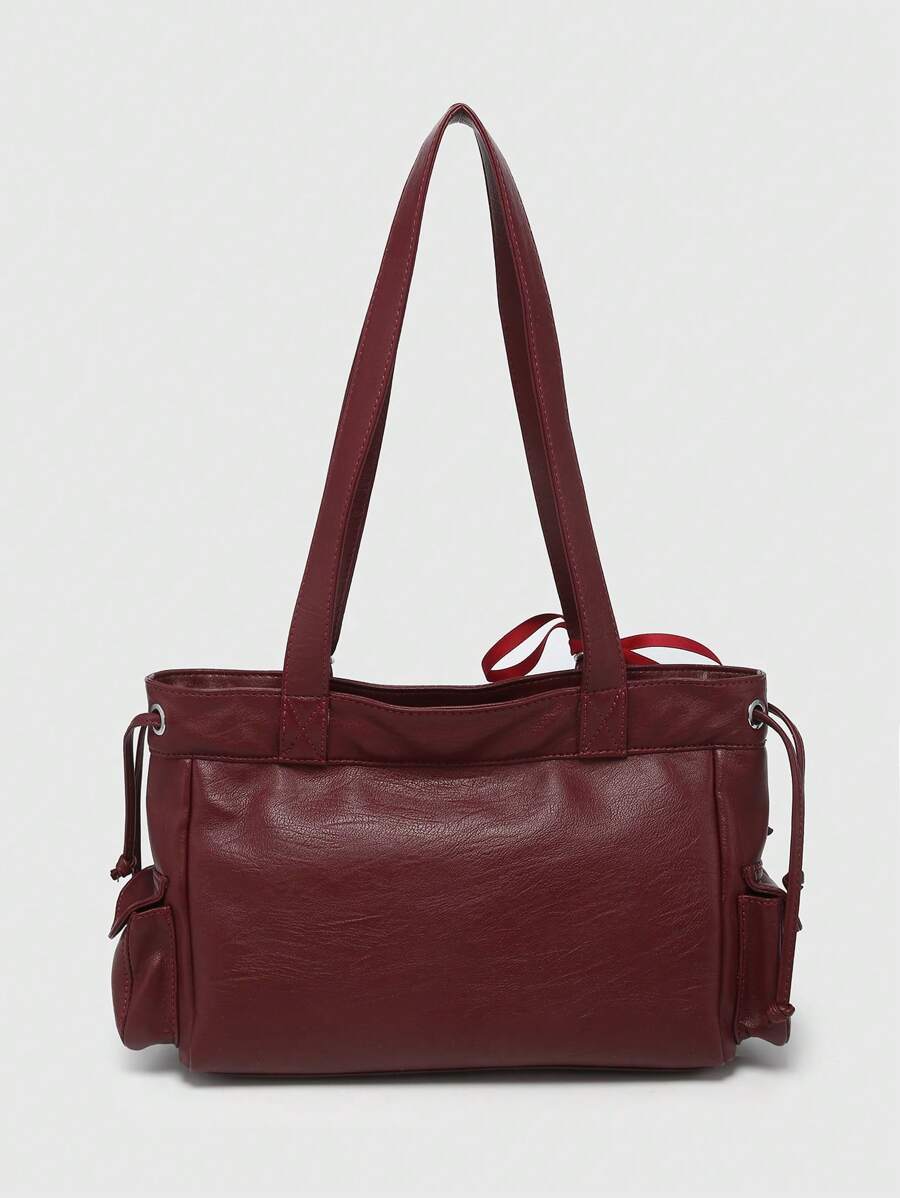 Kawaii Women's Retro Post-Apocalyptic Ombre Red Cross & Heart Charm, Pink Ribbon Bow Decor Shoulder Tote Bag With Multiple Pockets, Large Capacity