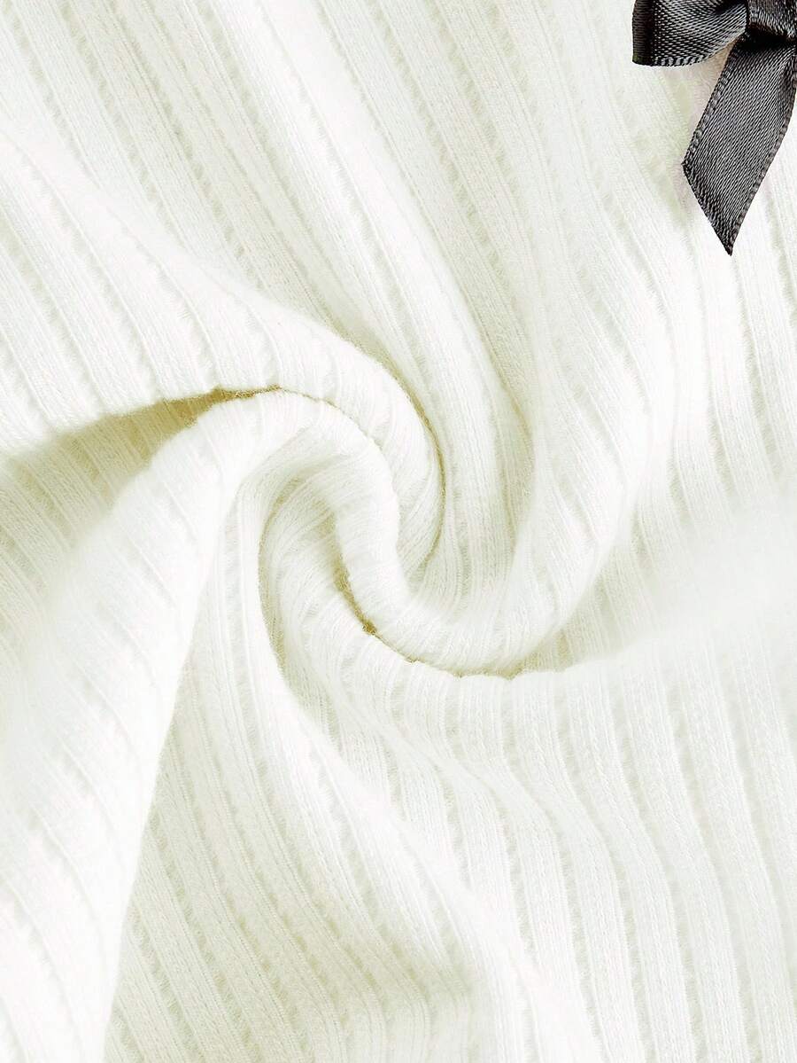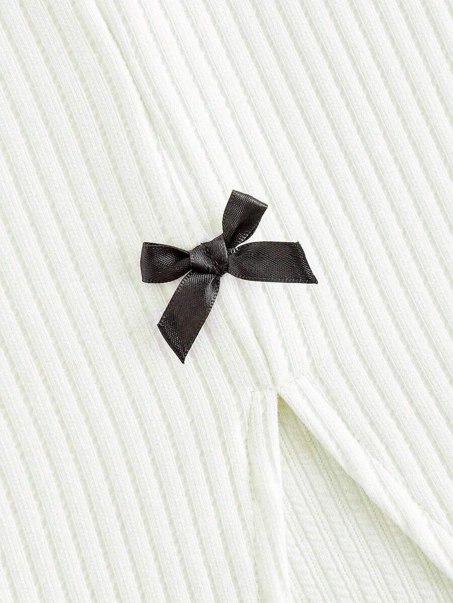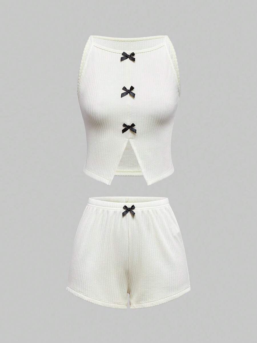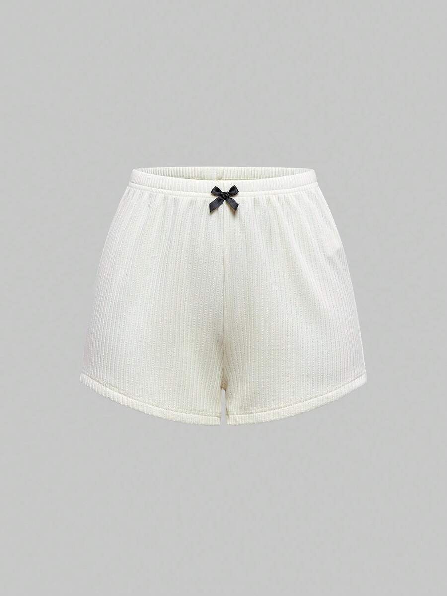 Kawaii Women's Summer Casual Basic Ribbed Bow Strap Shorts Pajama Set