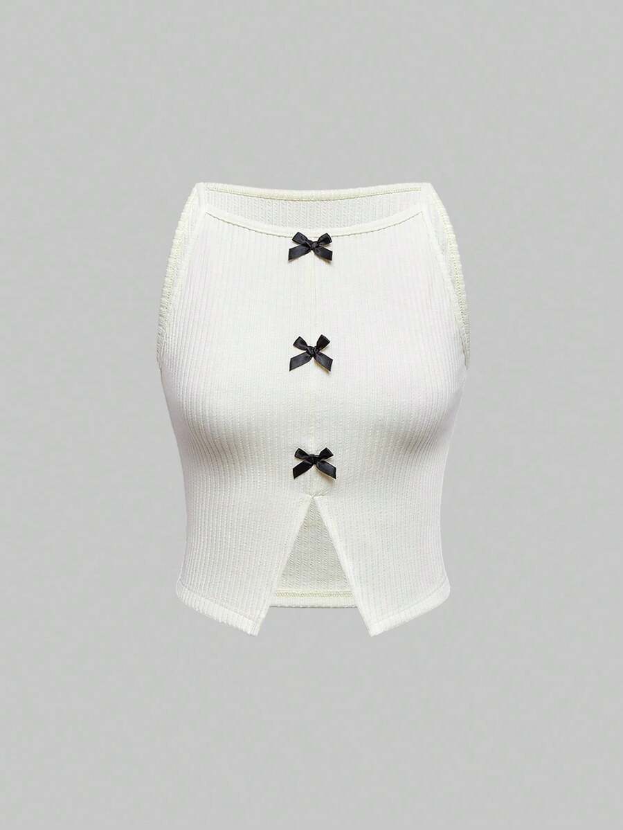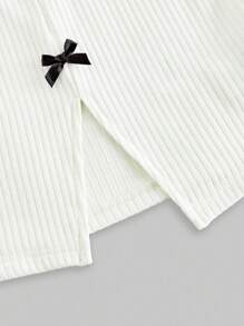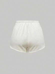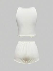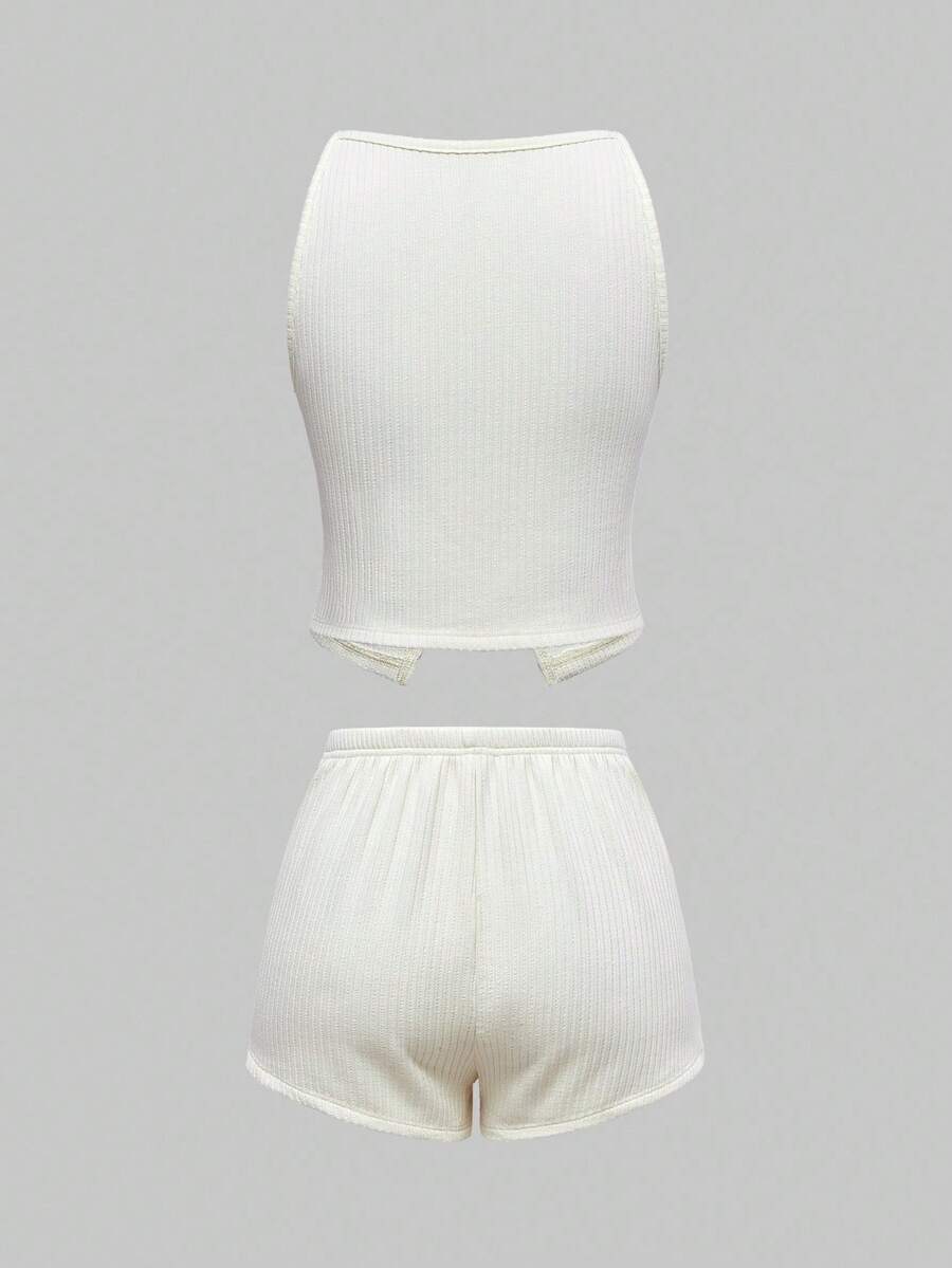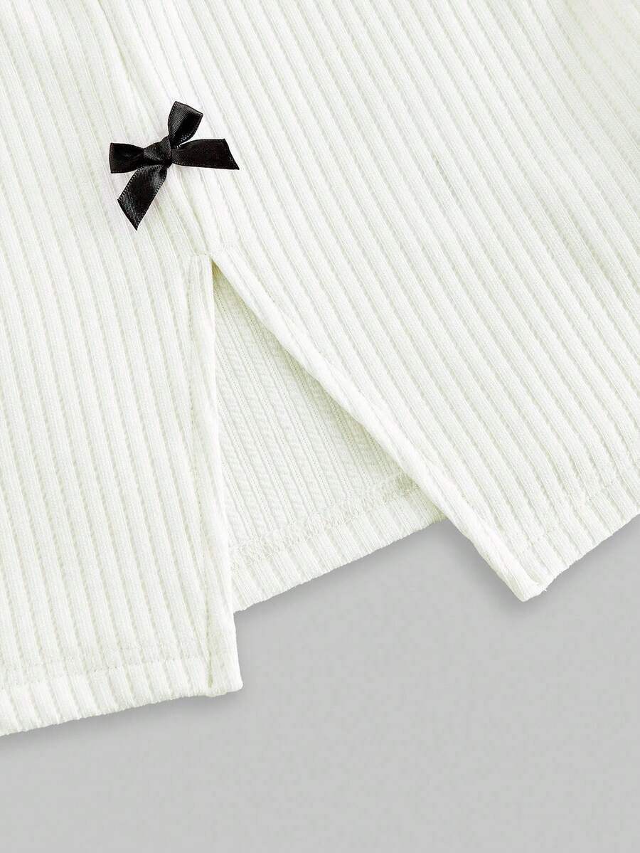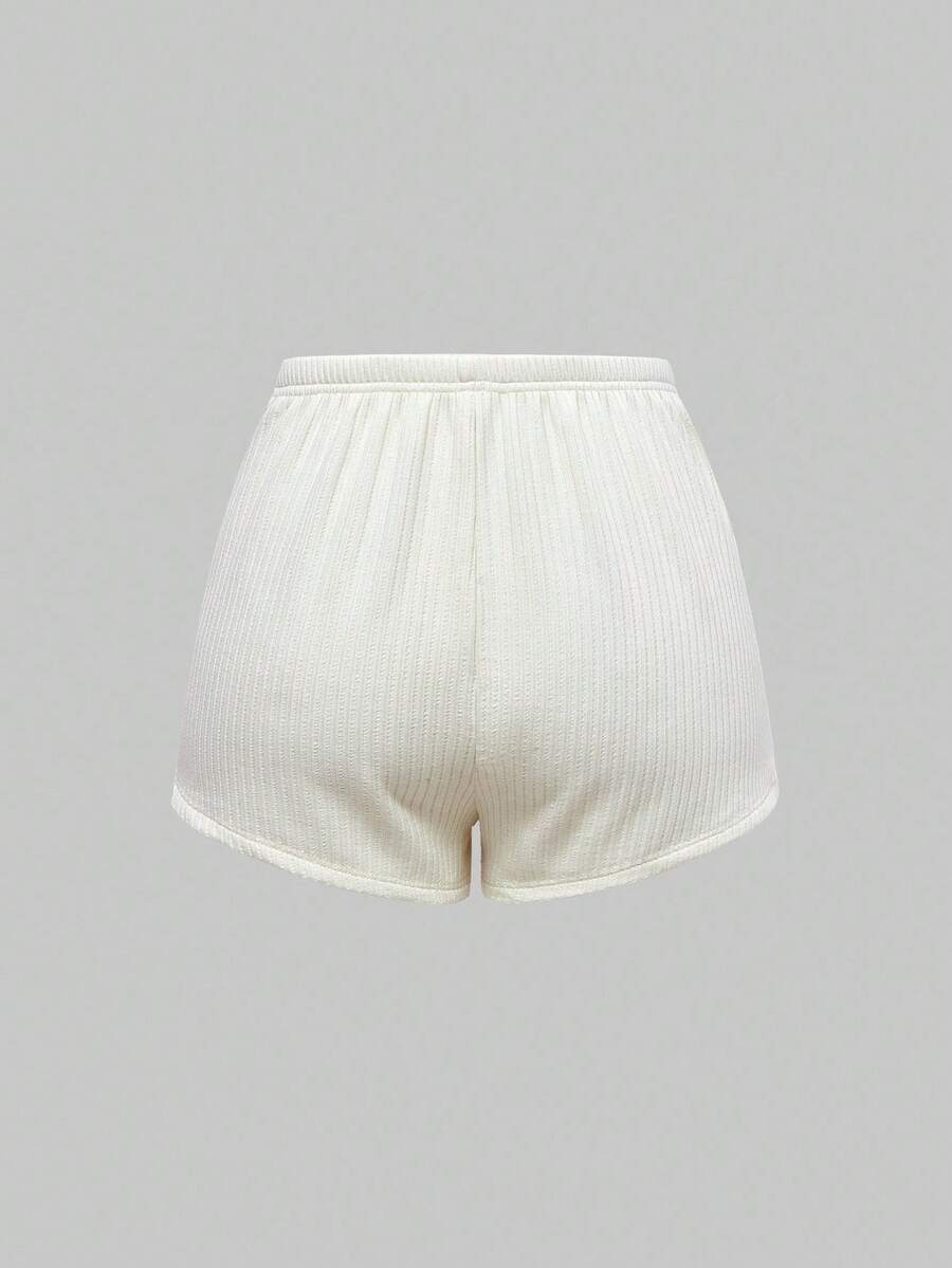 Kawaii Women's Summer Casual Basic Ribbed Bow Strap Shorts Pajama Set