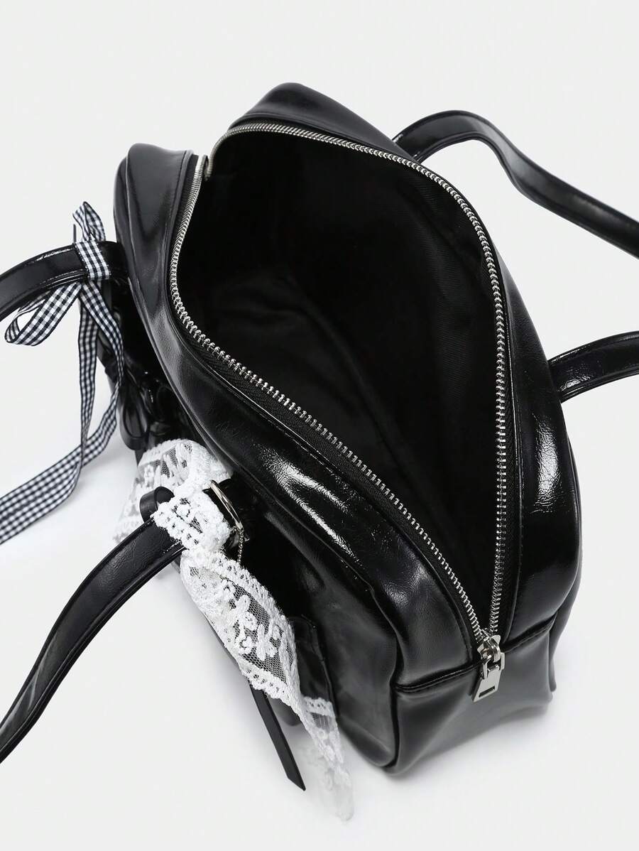 Kawaii Women's Vintage Cute Plaid Bow Decor Adjustable Strap Shoulder Underarm Bag With Multiple Pockets, Boston Style Tote Bag