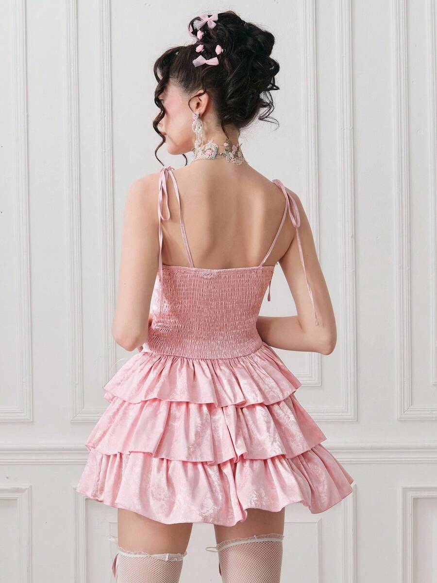 EDITION Women's Vintage Palace Style Multi-Tier Ruffle Textured Satin Dress, Suitable For Wedding