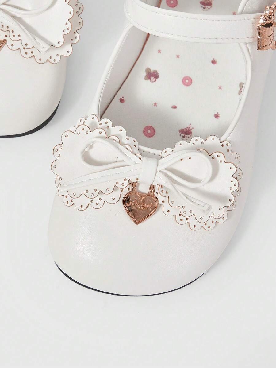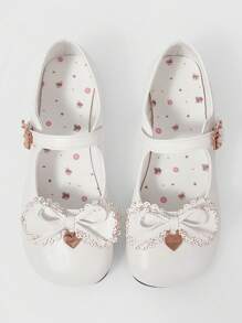 Kawaii Women's White Mary Jane Shoes With Buckle Straps, Bow Decor Lolita Shoes, Soft Outsole, Lace Up Japanese JK Uniform Flats