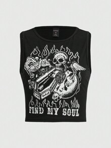 Kecoatembem Grunge Punk Slogan Skull Graphic Tank Top FIND MY SOUL