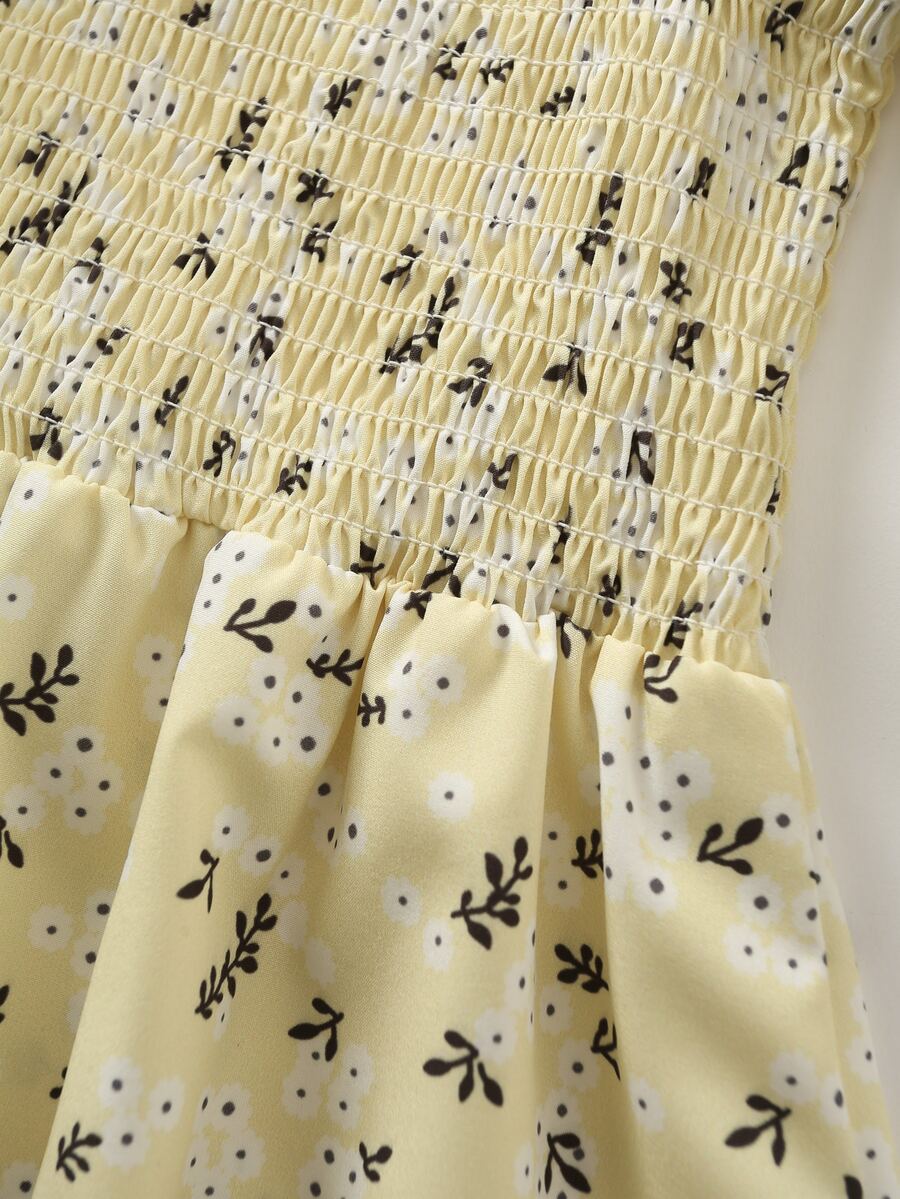 Knot Detail Ditsy Floral Shirred Dress