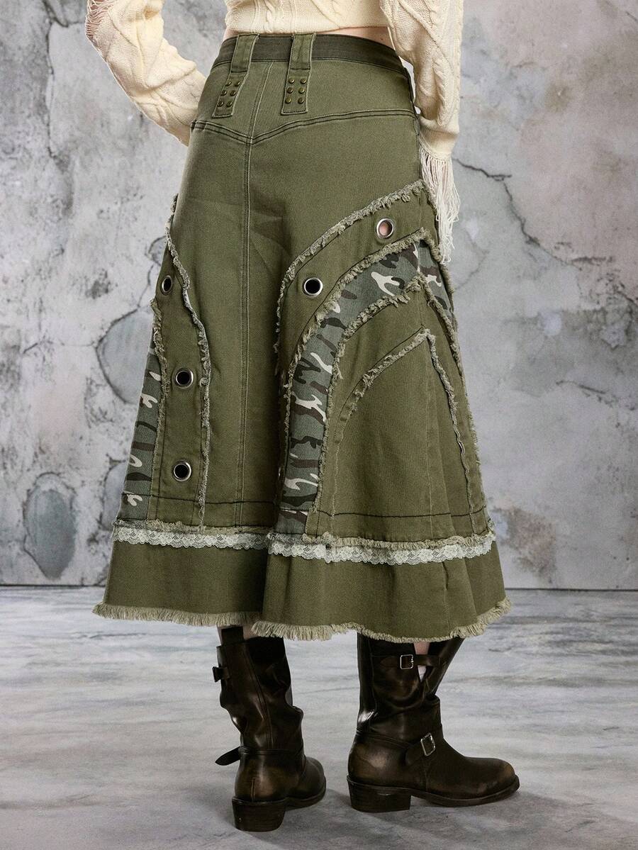 EDITION Kpop Vintage Patchwork Camouflage Sexy Denim Skirt