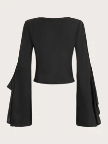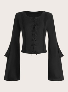Lace Up Front Flounce Sleeve Blouse