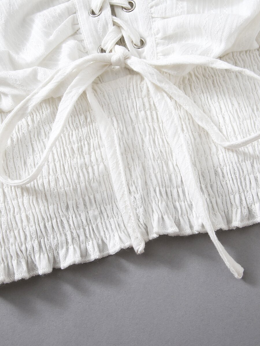 Lace-up Shirred Crop Top