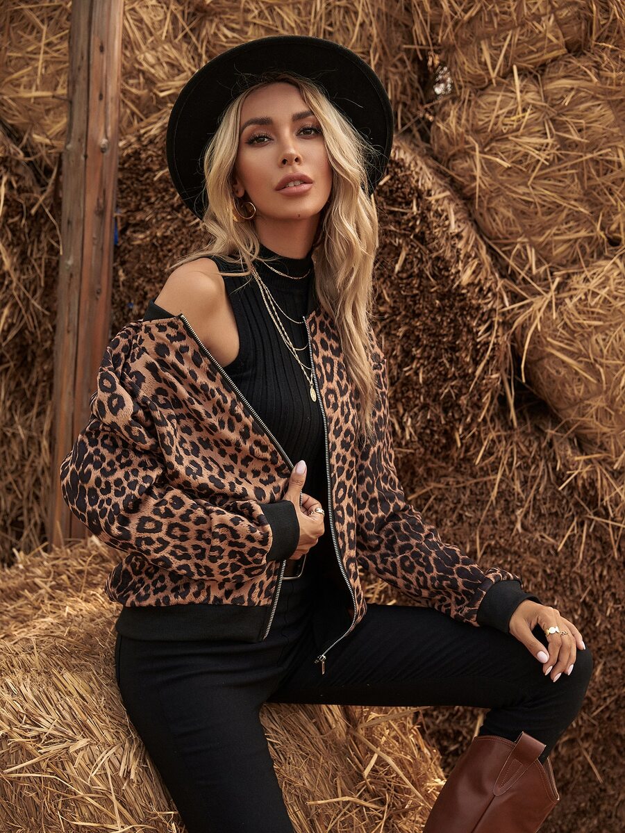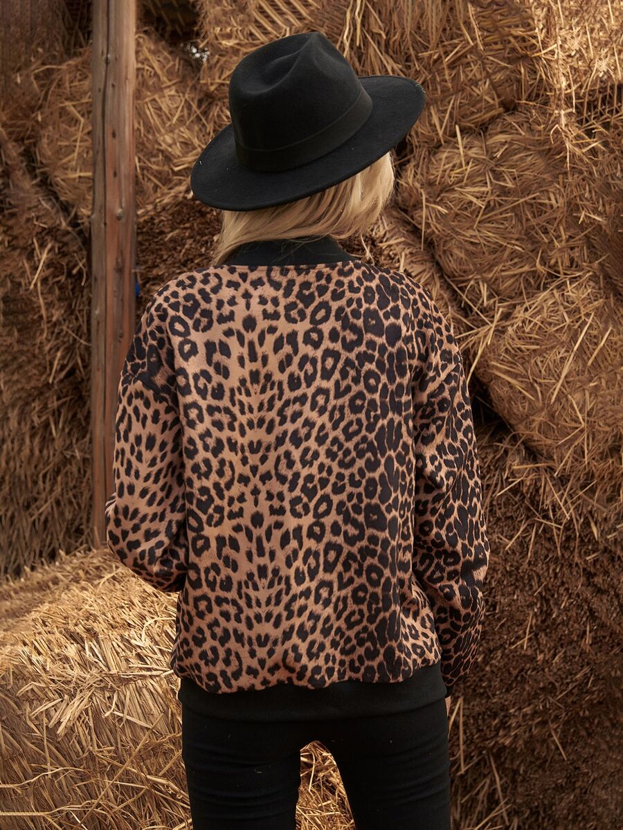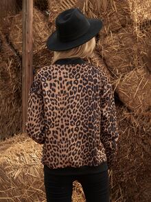 Leopard Print Zip Up Suedette Bomber Jacket