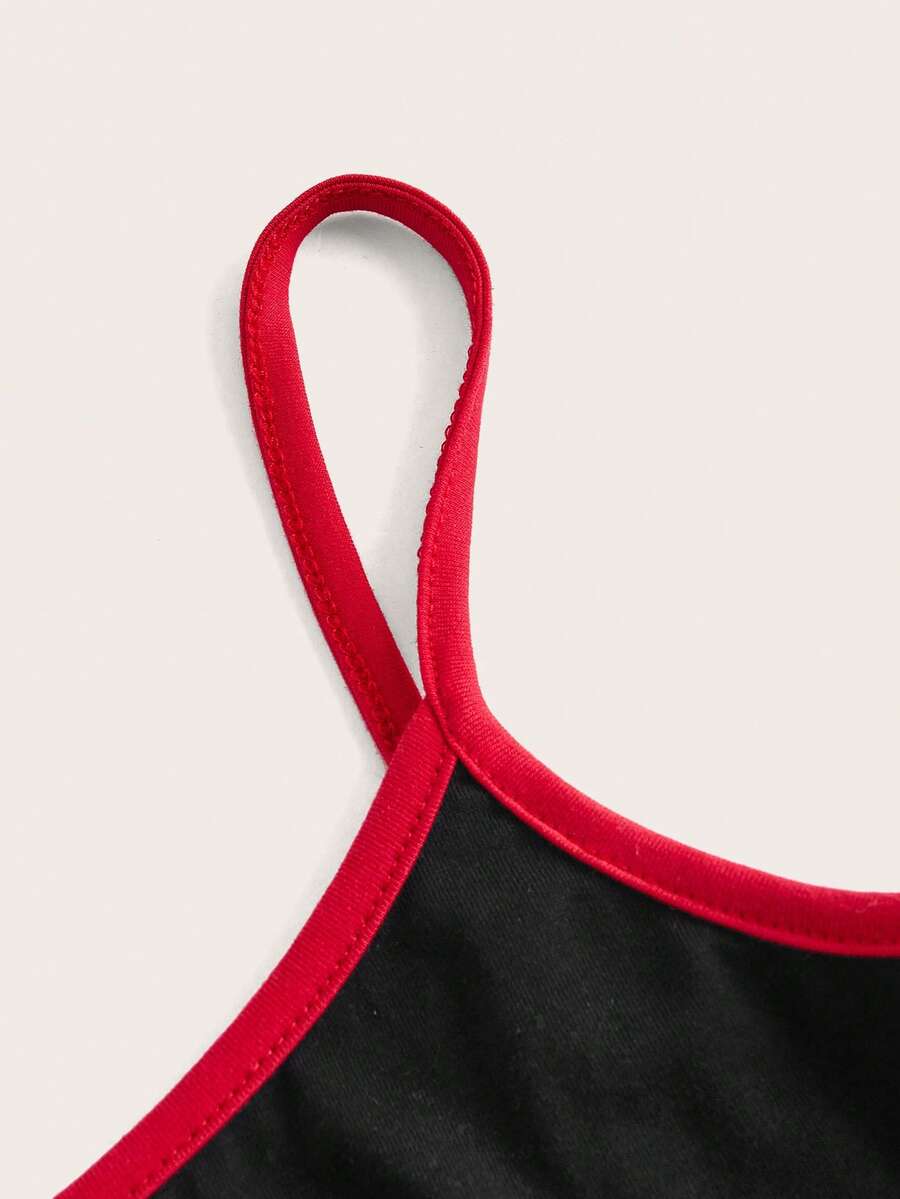 Goth Letter & Figure Graphic Contrast Binding Cami Top