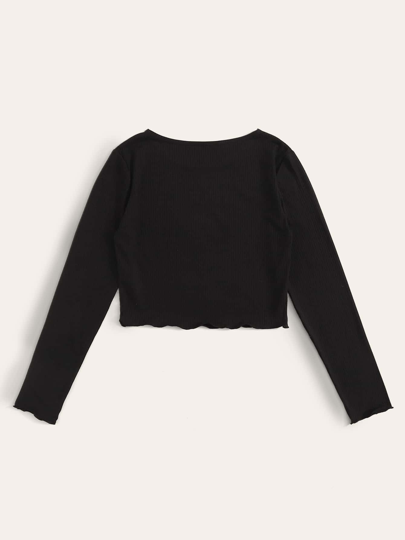 Letter Embroidered Frill Black Crop Top