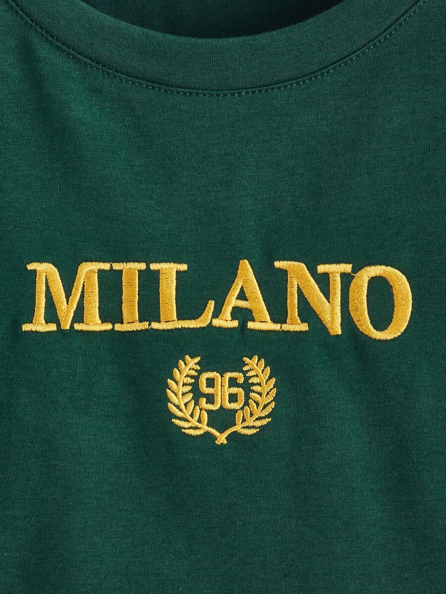 Letter Embroidery Crop Tee