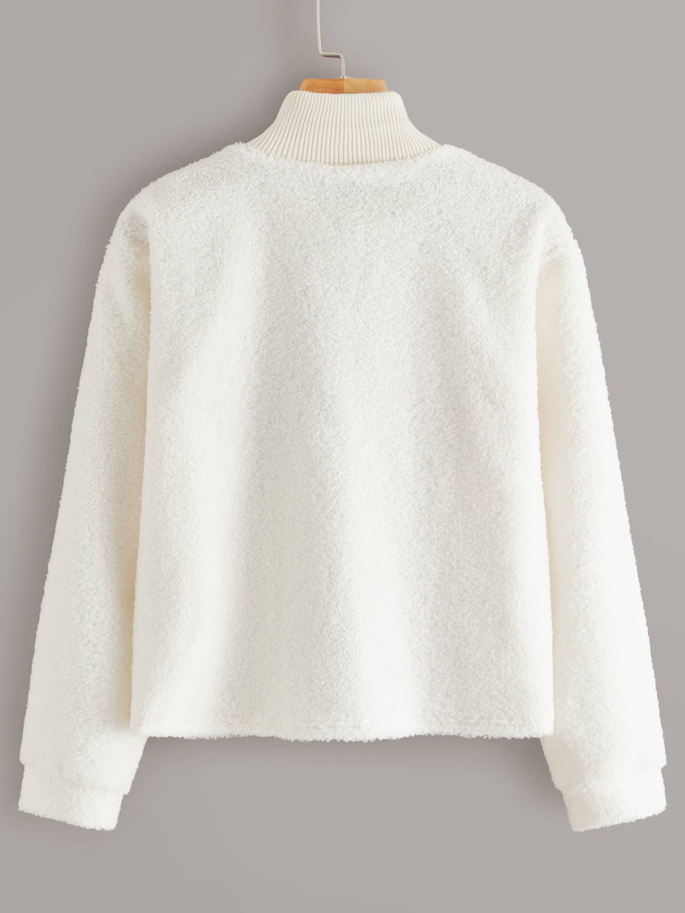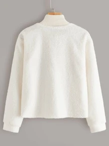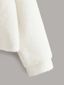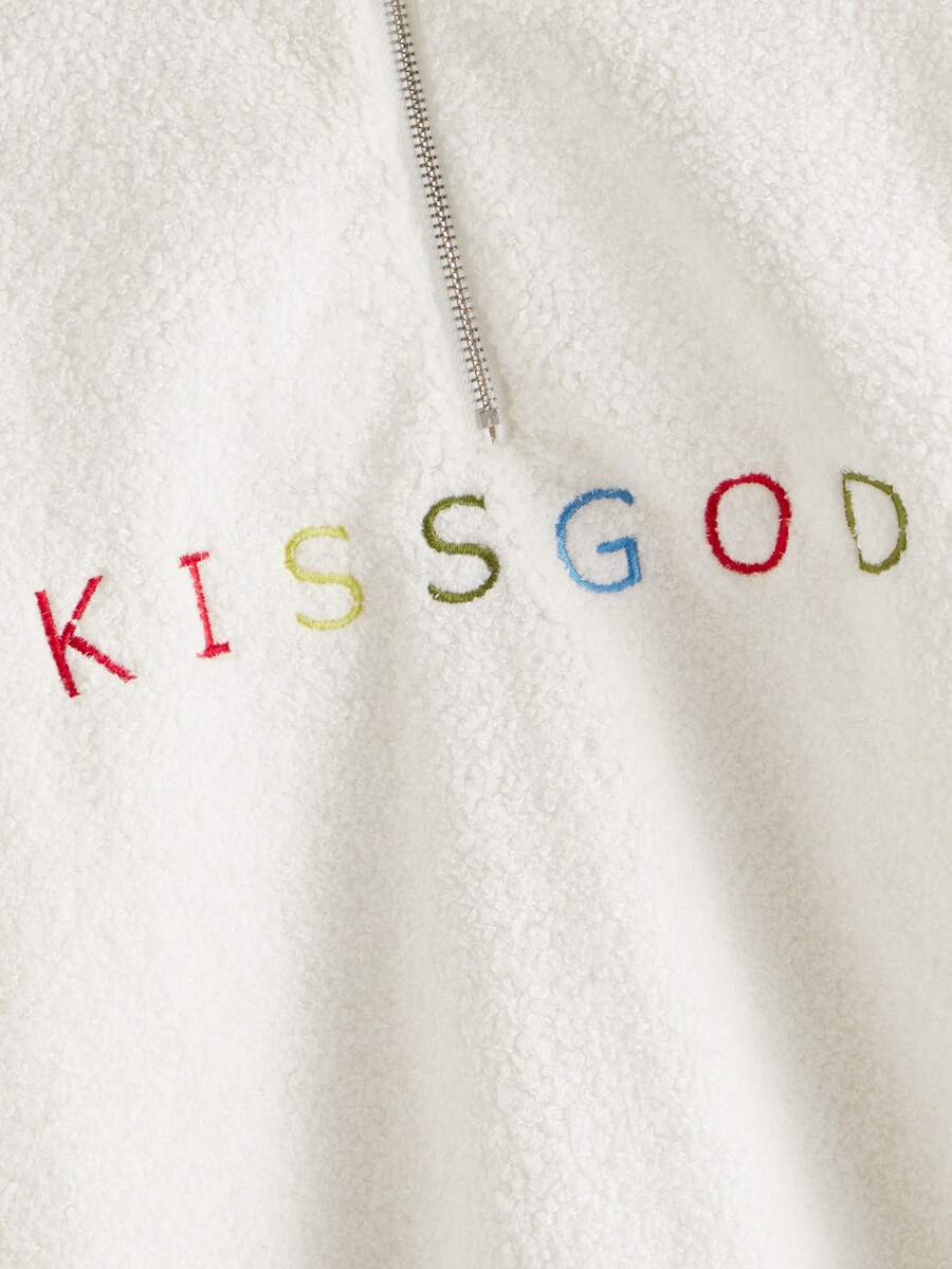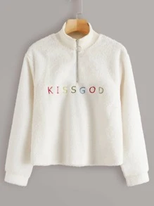 Letter Embroidery Half Zip Teddy Sweatshirt