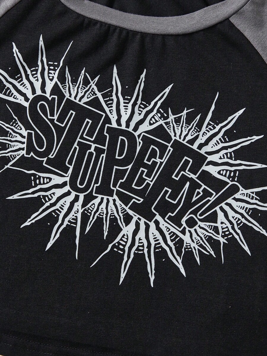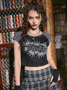 Harry Potter | ROMWE Letter Graphic Raglan Sleeve Crop Tee