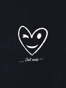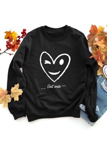 Letter & Heart Print Thermal Lined Sweatshirt