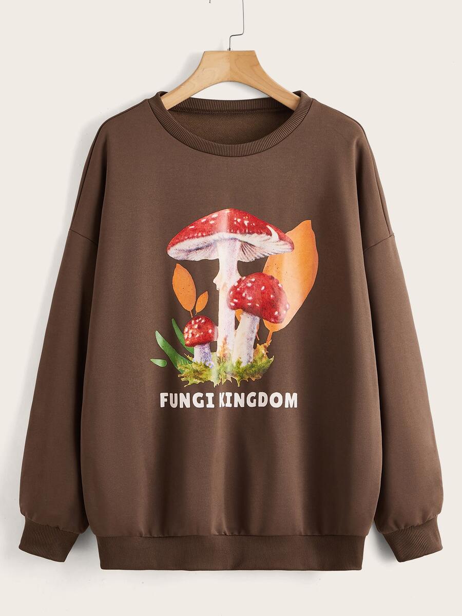 Letter Mushroom Graphic Drop Shoulder Sweatshirt