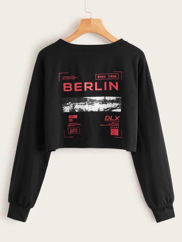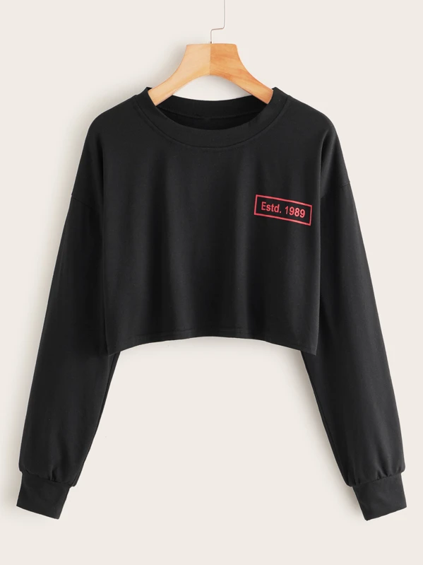 Letter Print Crop Tee