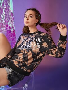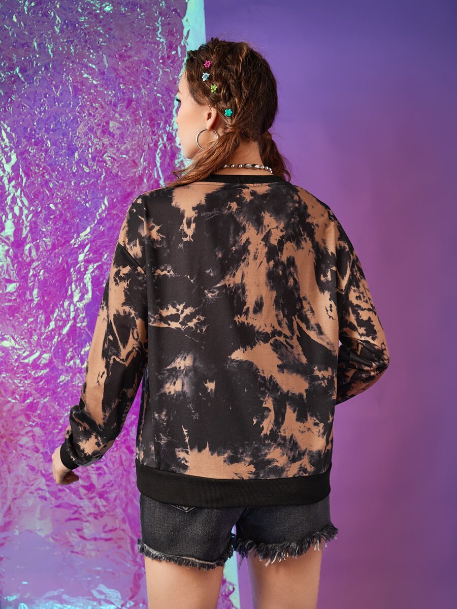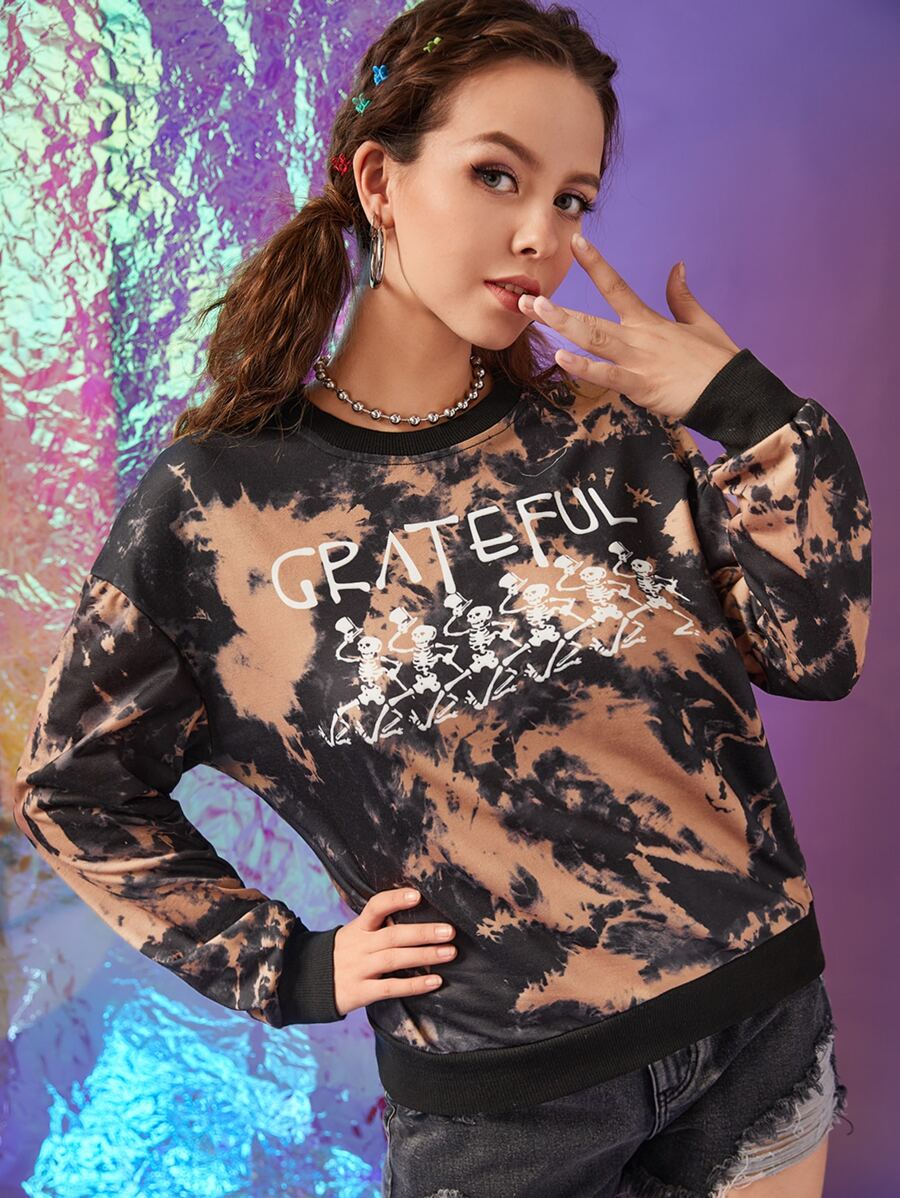 Letter Skeleton Graphic Tie Dye Drop Shoulder Sweatshirt