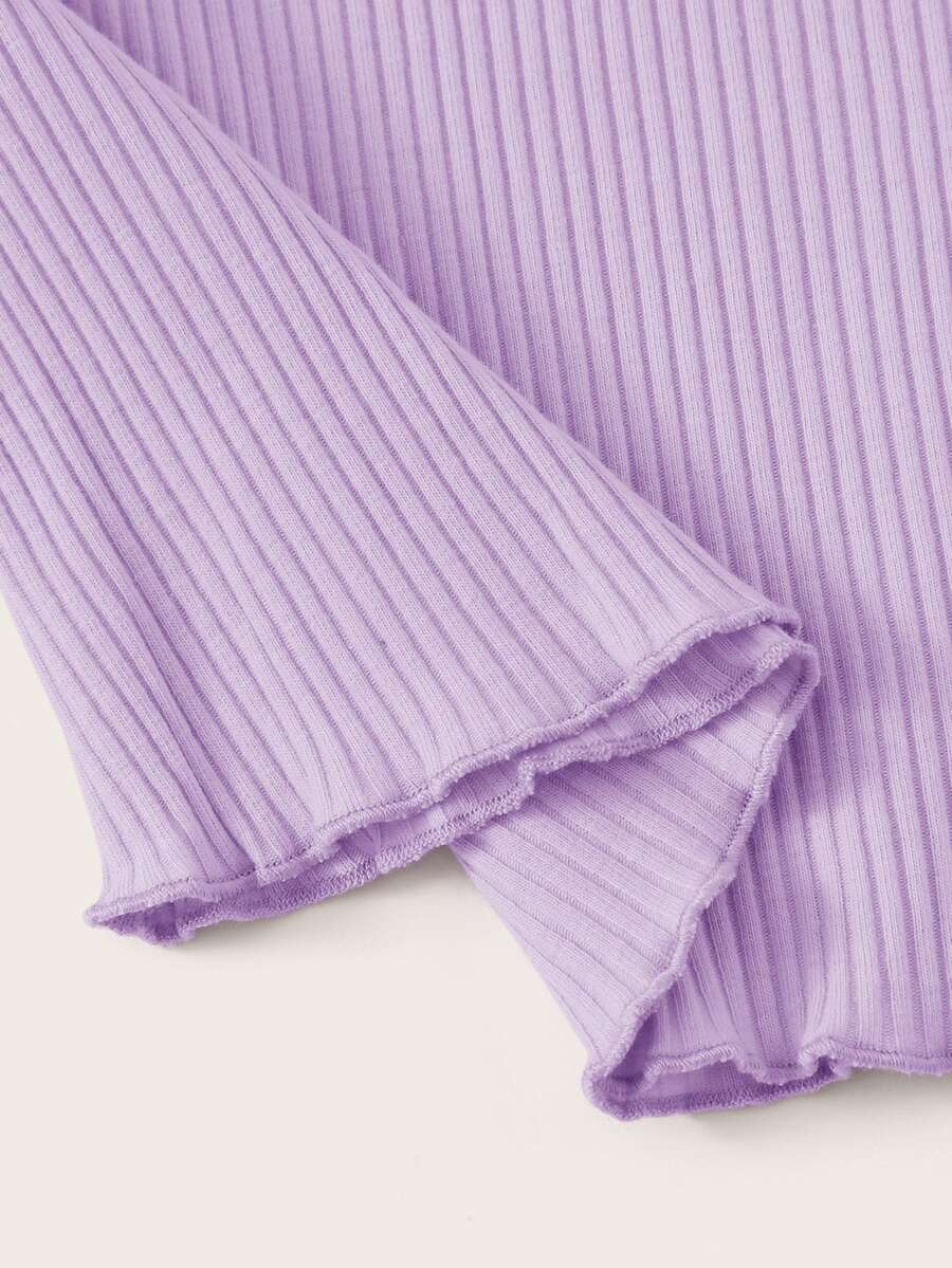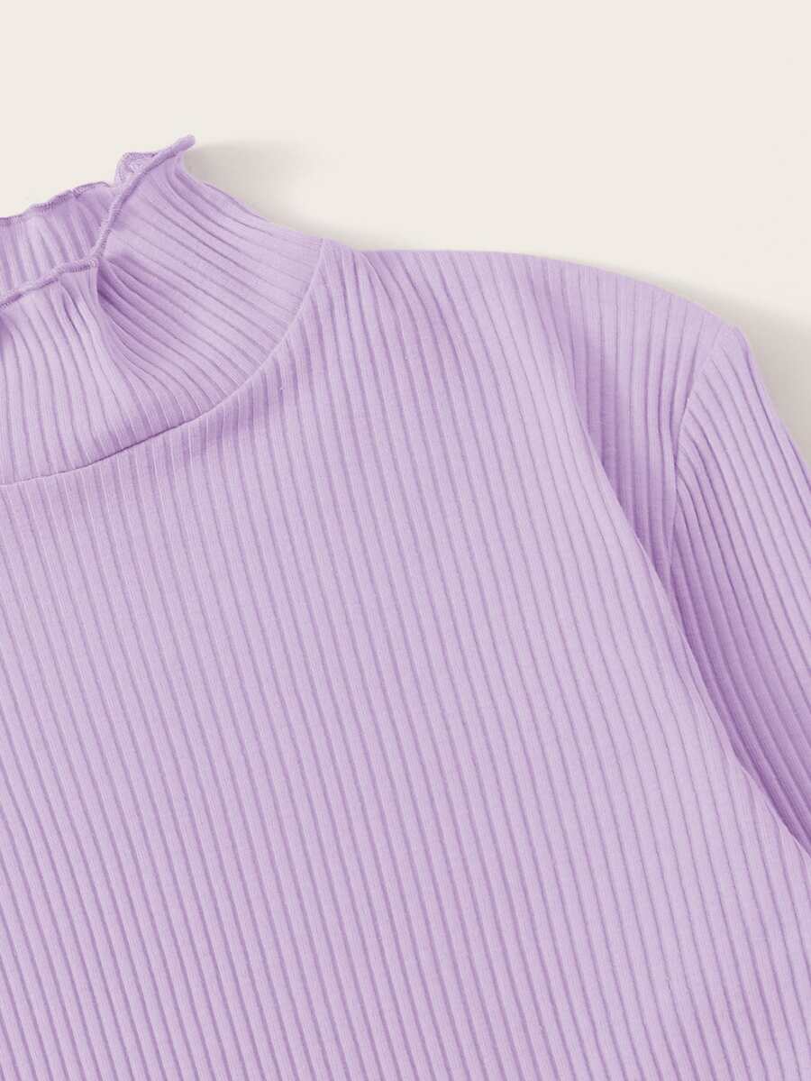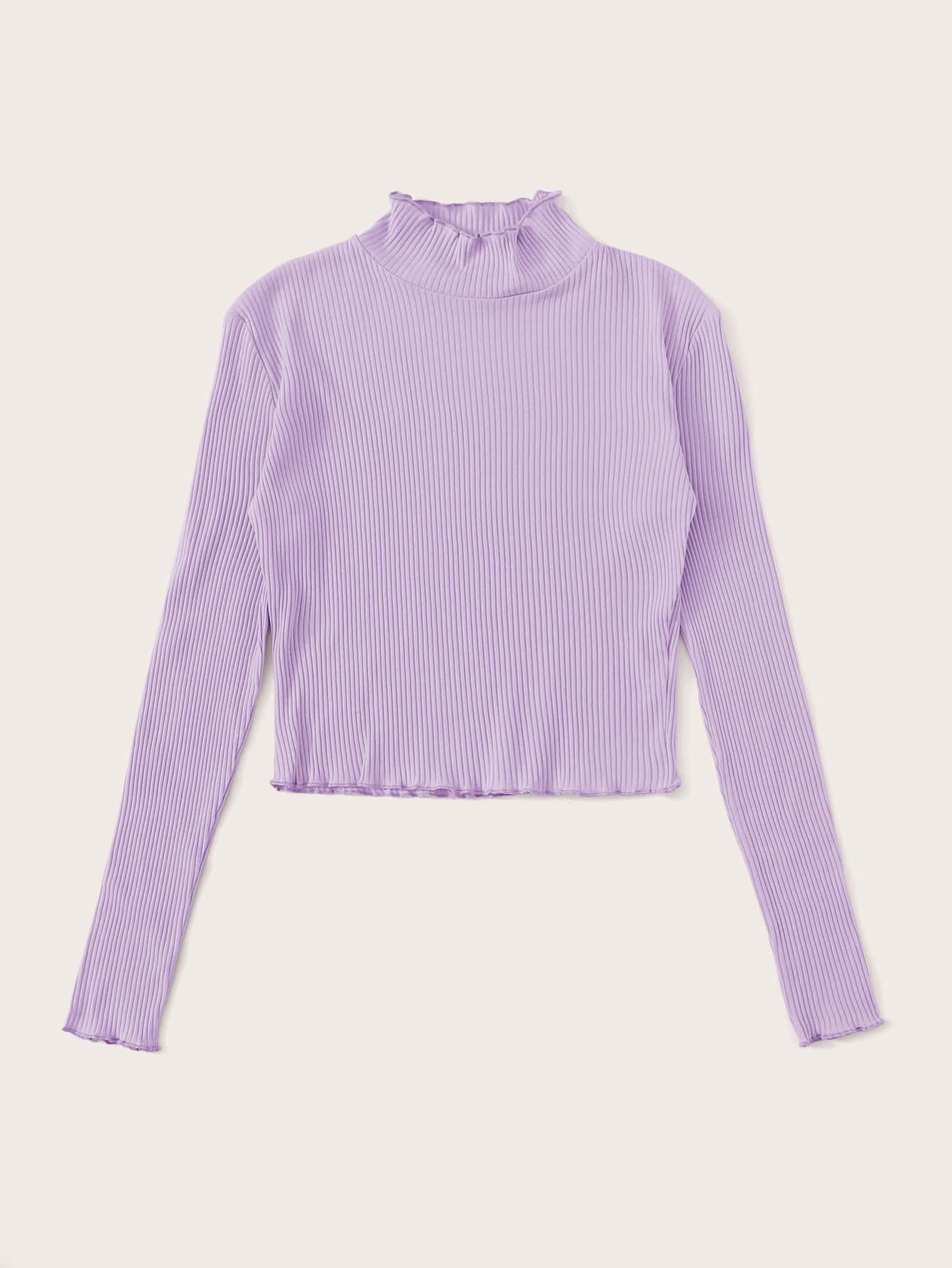 Lettuce Trim Mock Neck Ribbed Purple Top
