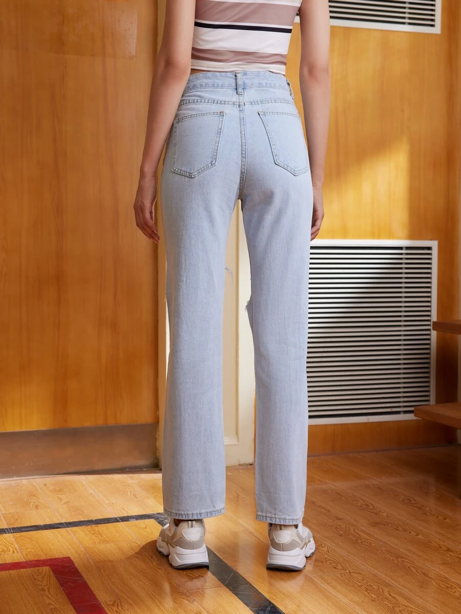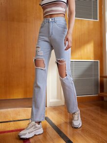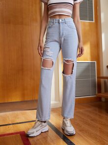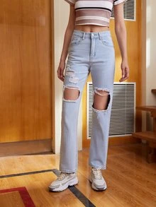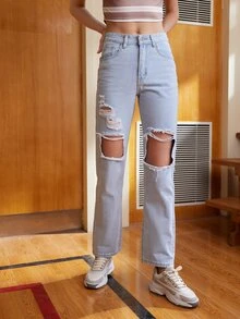 Light Wash Destroyed Ripped Boyfriend Jeans