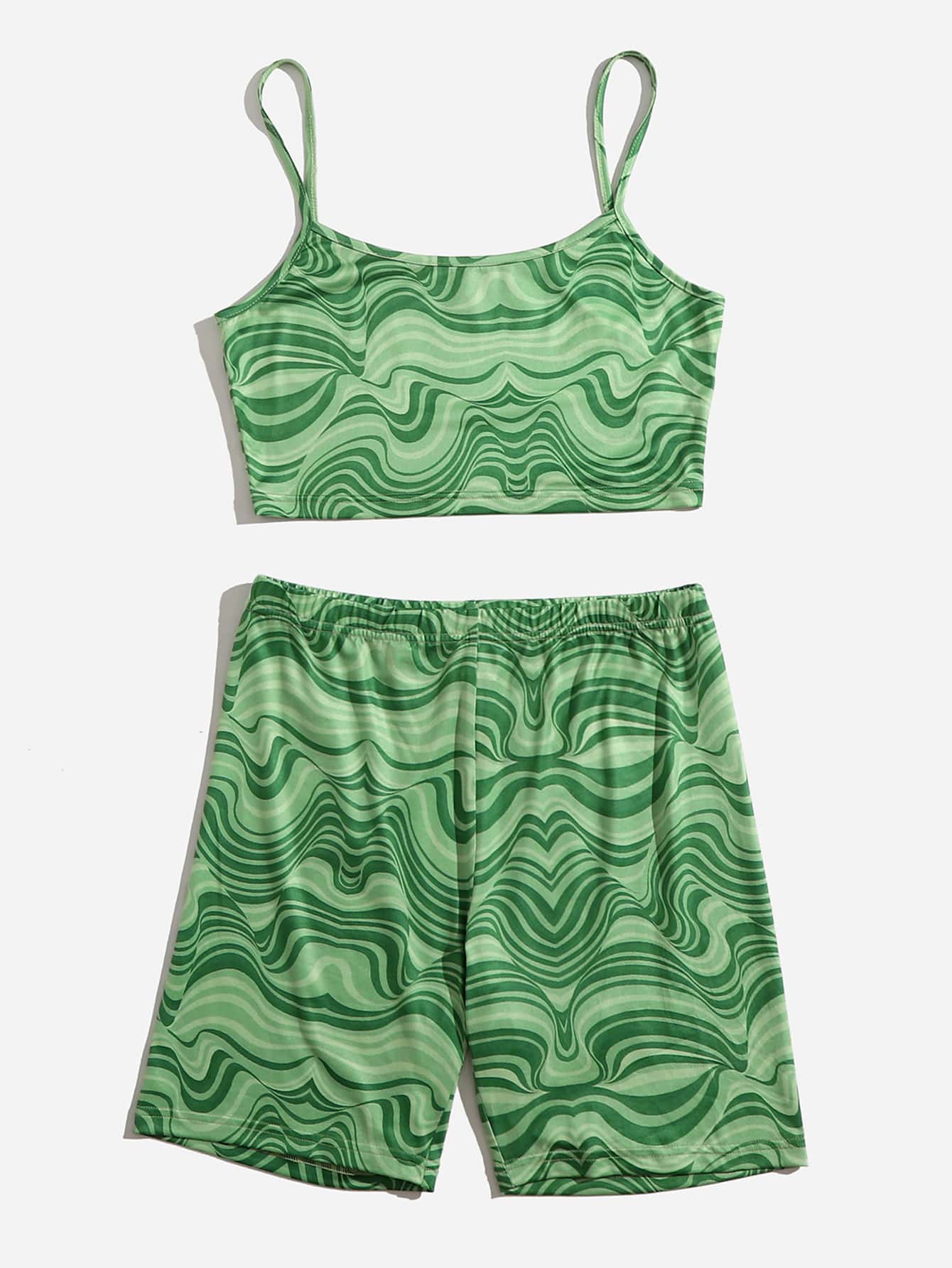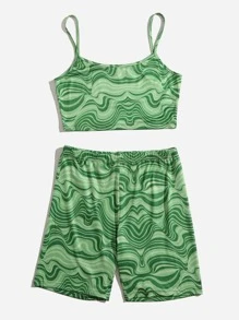 Marble Print Cami Top And Biker Shorts Set