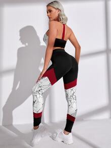 Marble Print Sports Bra & Colorblock Leggings