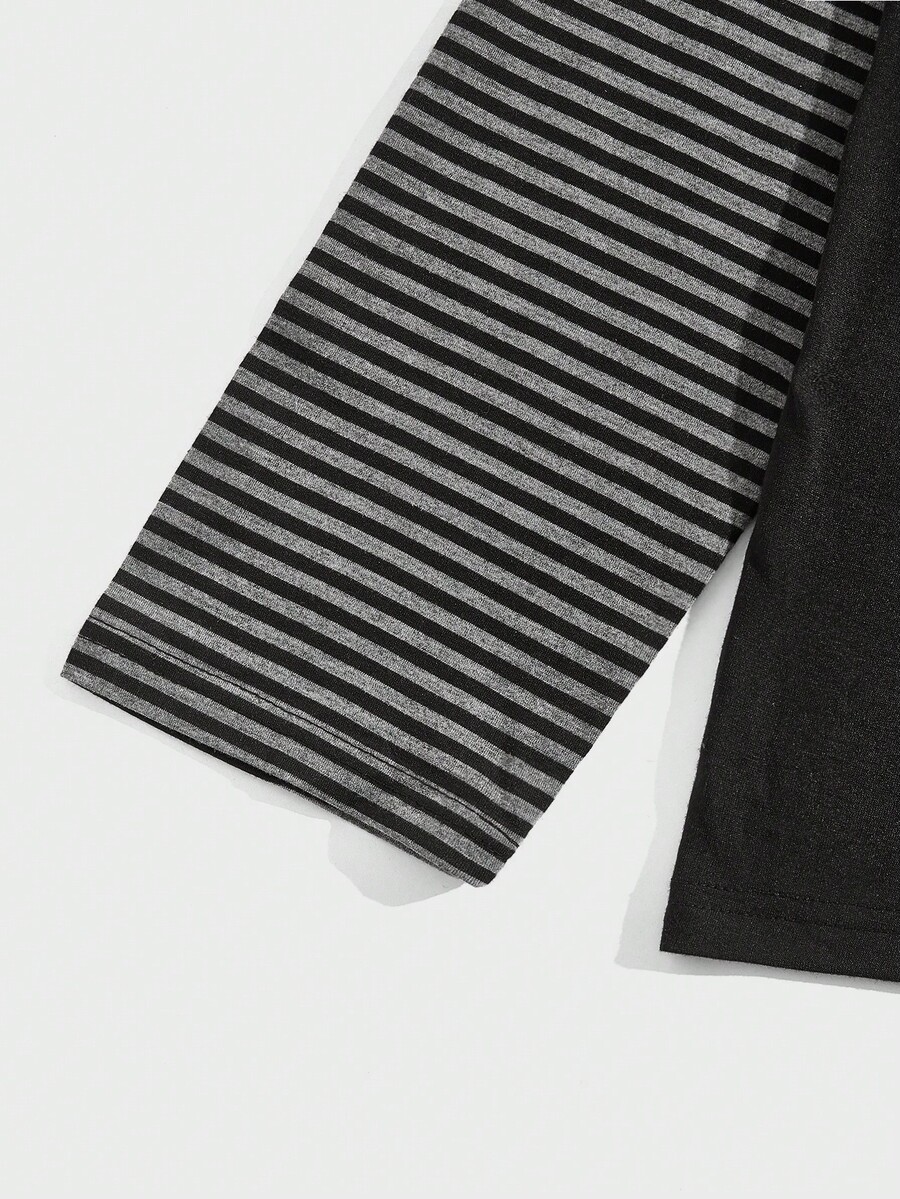 Mariexvx Guys Striped Slogan & Skeleton Print 2 In 1 Tee