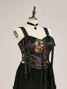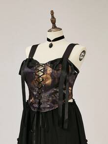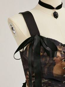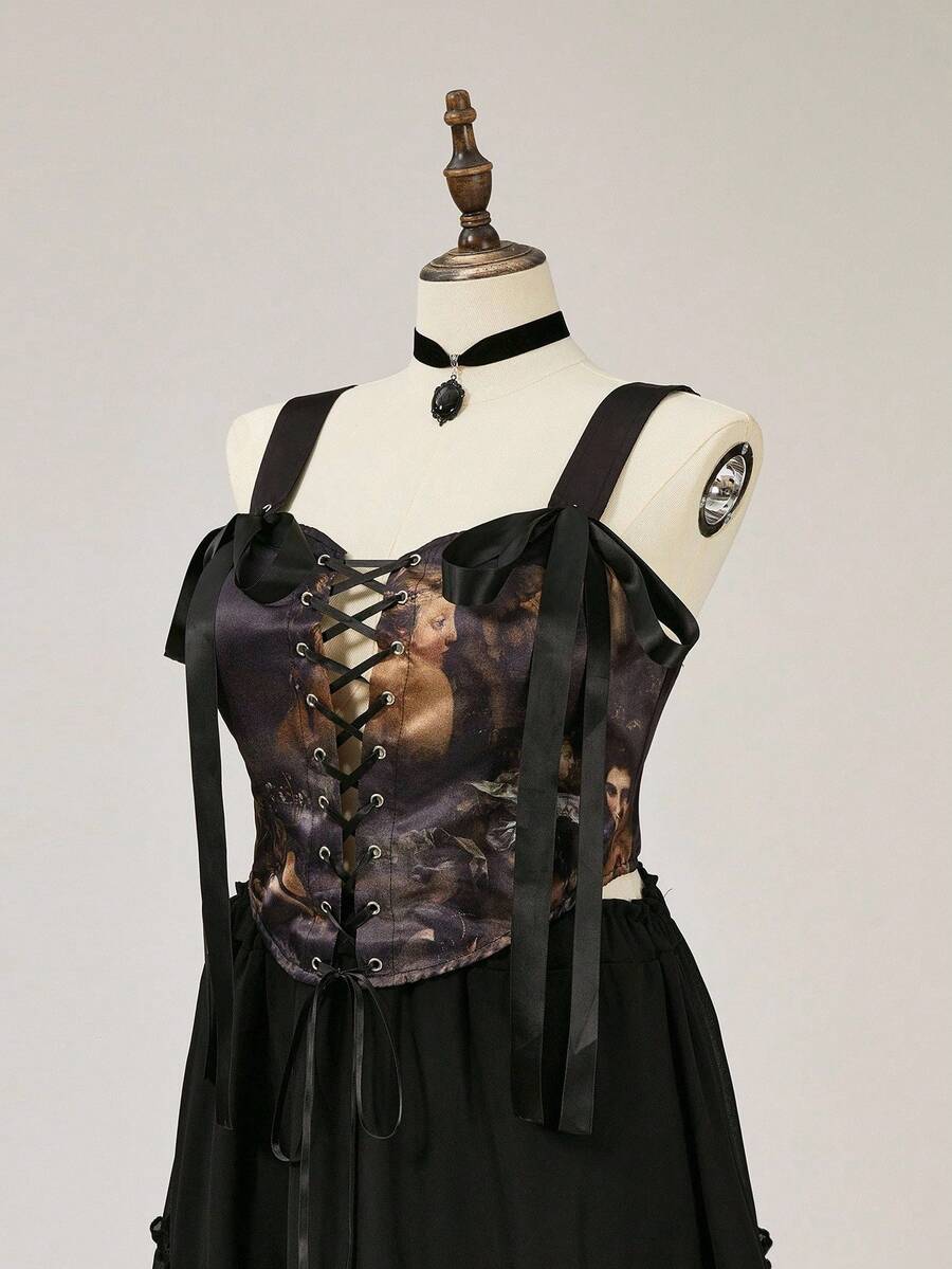 EDITION Medieval Palace Style Vintage Shoulder Tie Design Oil Painting Pattern Plus Size Women Camisole Tank Top