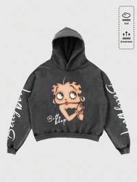 Betty Boop | ROMWE Men's Cartoon Figure Graphic Washed Hoodie