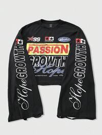 ROMWE Avant Guys Letter Graphic Drop Shoulder Crop Sweatshirt