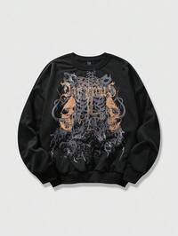 Grunge Punk Men's Casual Figure & Star Print Pullover Sweatshirt