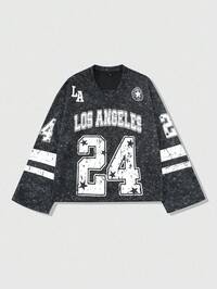 Prep Men's Long Sleeve Shirt, Retro American Sports Top, Oversized #24 Graphic, Loose V-Neck, Great For Basketball Fans & Guys, Streetwear/Sportswear