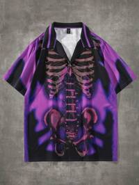 Men's Street Life Punk Print Button-Down Short Sleeve Shirt