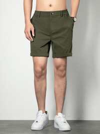 Men's Solid Color Drawstring Waist Pockets Casual Shorts