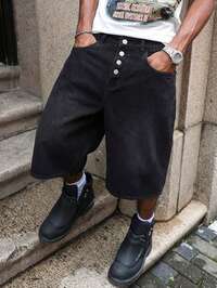 Goth Casual Summer Button Pocket Wide Leg Men Denim Shorts