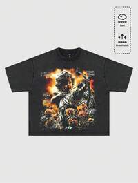 Street Life Jesus Loose Drop Shoulder Short Printed T-Shirt For Men