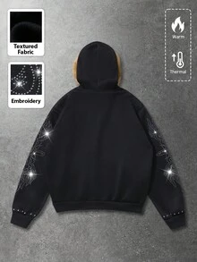Street Life Men's Brand Fluffy Trim Glitter Print Sweatshirt, Long Sleeve Top