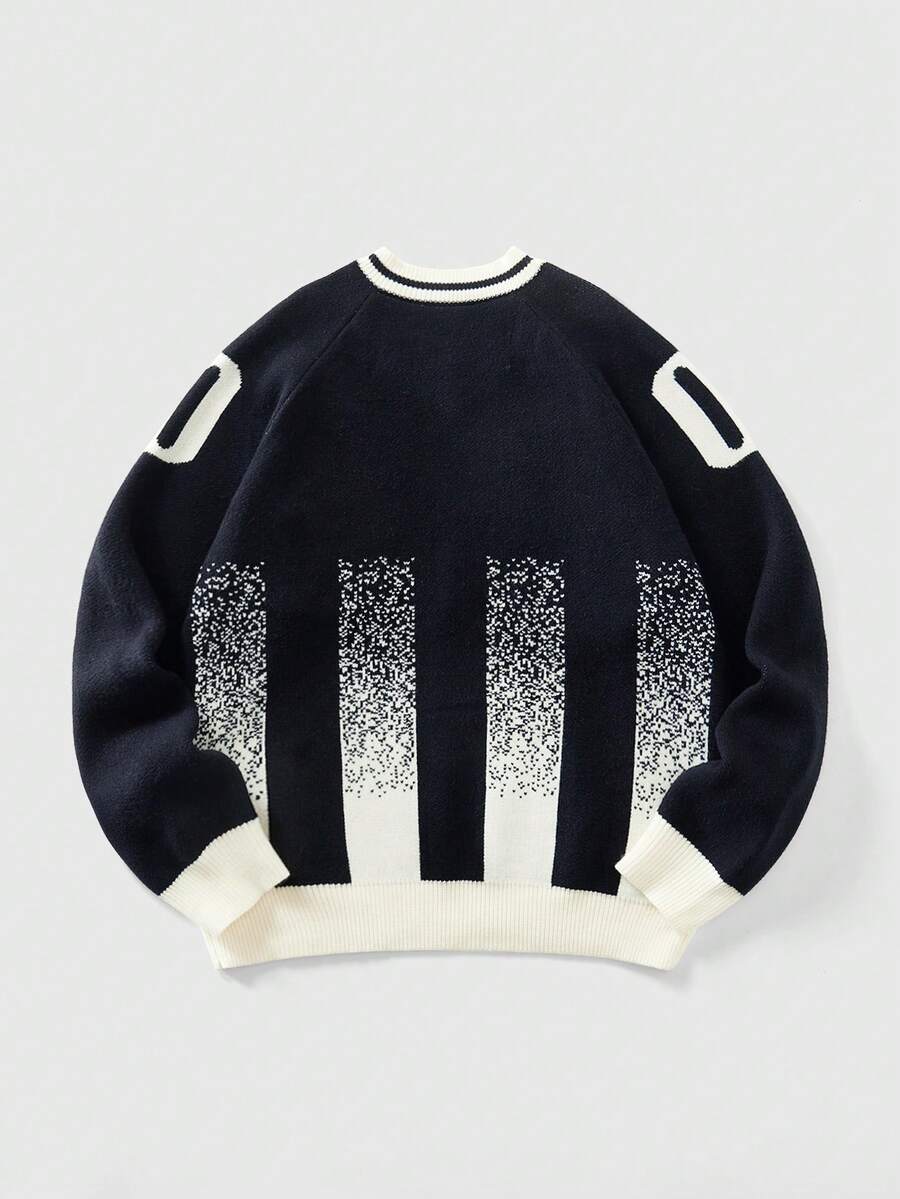 Street Life Men's Casual Black & White Striped Contrast Color Embroidered Sweater, Autumn/Winter, Long Sleeve Top