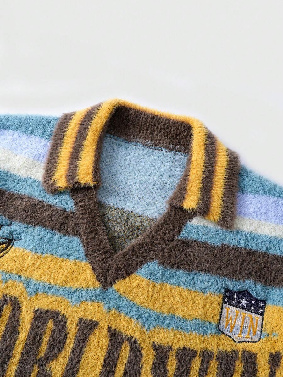 Prep Men's Casual Colorblock Striped Letter Pattern Sweater, Autumn/Winter, Long Sleeve Top